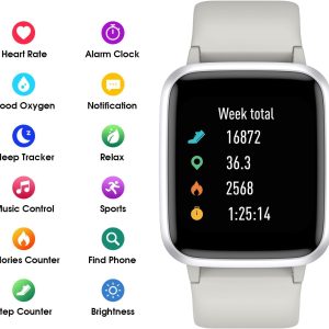 Smart Watch, 42mm Full Touchscreen Fitness Watch, Fitness Tracker with Heart Rate and Sleep Monitor, Step Calorie Counter, Swimming Waterproof Pedometer Watch for Women Men