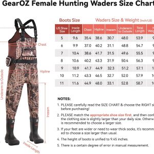 Waterfowl Hunting Waders for Women, Waterproof Duck Hunting Waders Female Insulated Neoprene Chest Wader Camo Bootfoot Wader with Boot Hanger for Fishing Breathable Hunter Waders Weighters