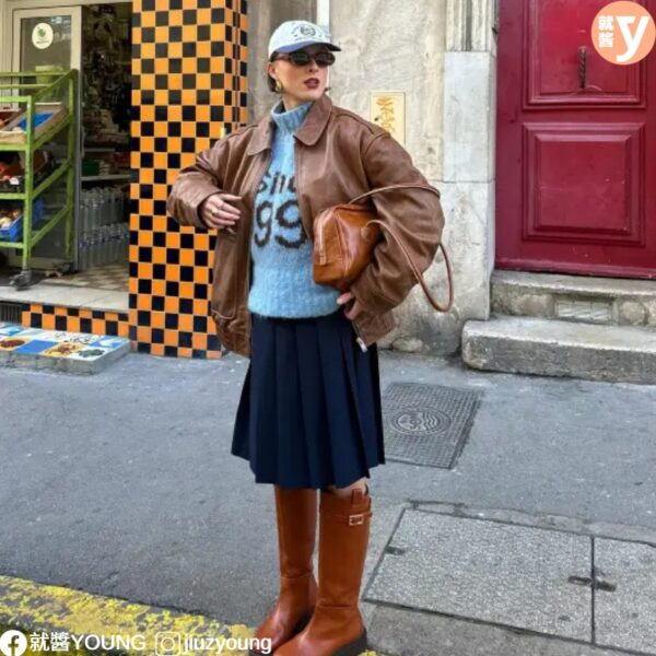 棕色毛衣 + 抹茶绿半身裙:棕色毛衣搭配抹茶绿半身裙,再配上一双棕色短靴,营造出温暖又时尚的秋冬氛围。